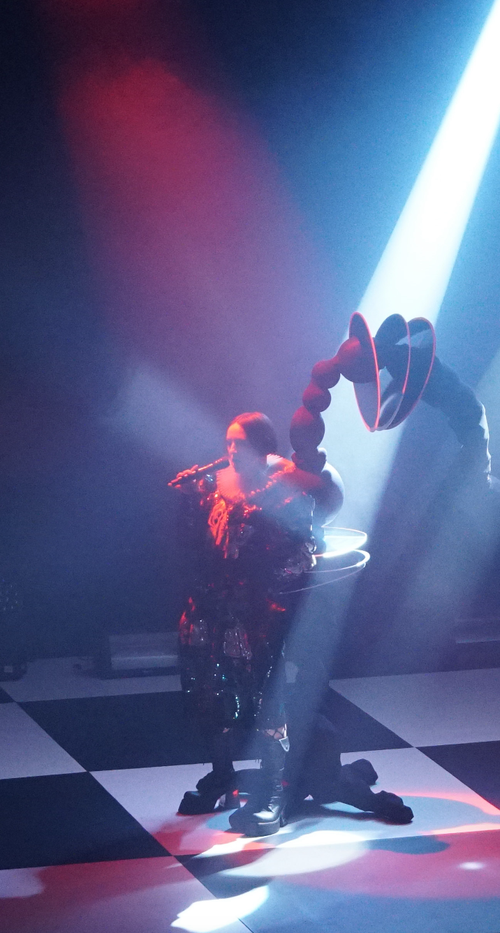 Artiste plasticienne multimédia, graphiste, scénographe et designer, Juliette Gelli~ développe des effets spéciaux IRL (« dans la vraie vie ») qui prennent forme autant dans des espaces d’expositions que sur des scènes de spectacle, ou encore sur des pochettes d’album.